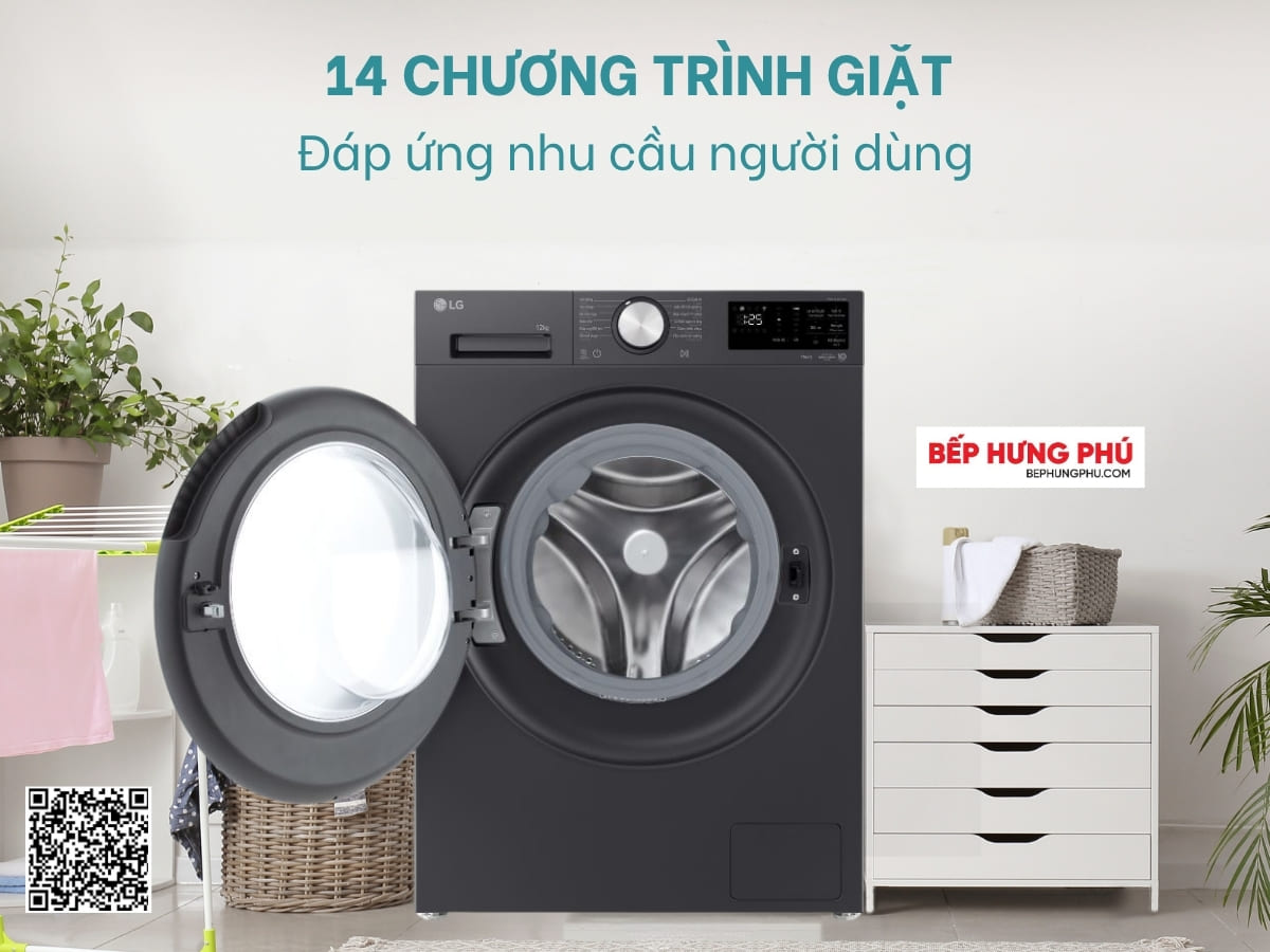 Máy giặt LG FX1412N5G được trang bị 14 chương trình giặt phong phú, giúp người dùng dễ dàng lựa chọn chế độ phù hợp với từng loại vải một cách chính xác. Cụ thể, các chương trình bao gồm: