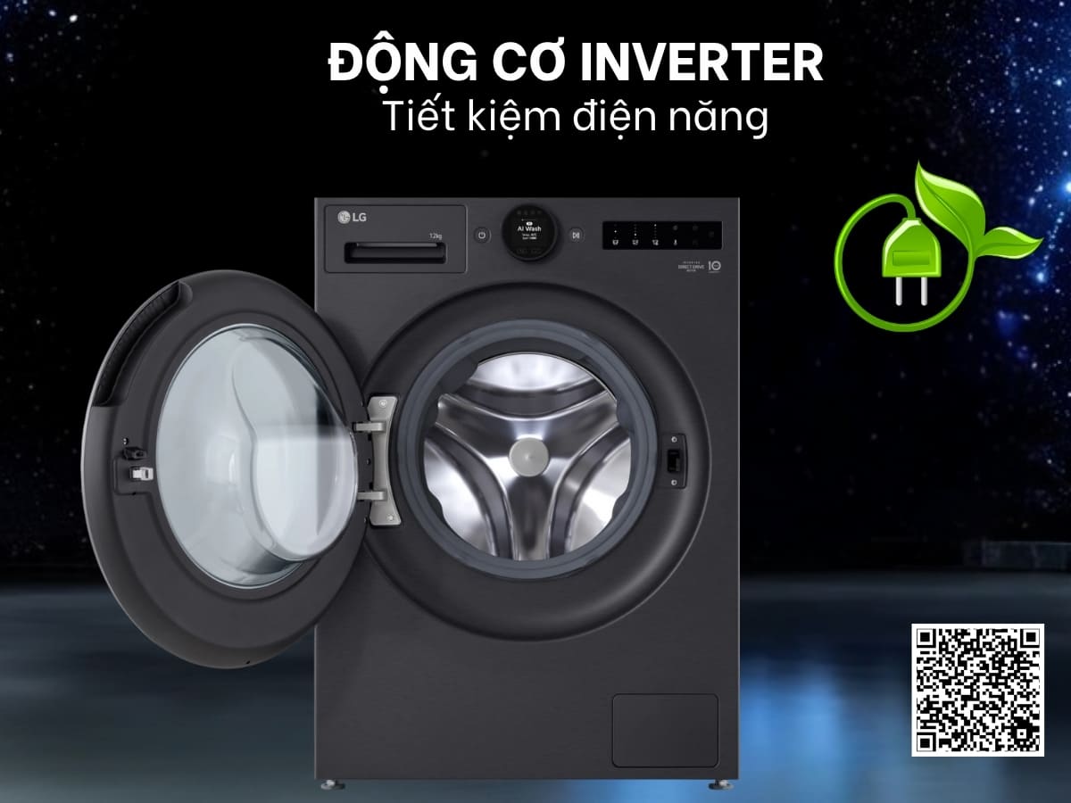 Máy giặt LG FX1412S3KAV được trang bị động cơ truyền động trực tiếp gắn thẳng vào lồng giặt, giúp máy vận hành êm ái, giảm rung lắc và tăng độ bền. Đồng thời, công nghệ Inverter tiên tiến giúp điều chỉnh công suất hoạt động phù hợp, tối ưu hóa lượng điện năng tiêu thụ, mang lại hiệu quả tiết kiệm điện vượt trội.