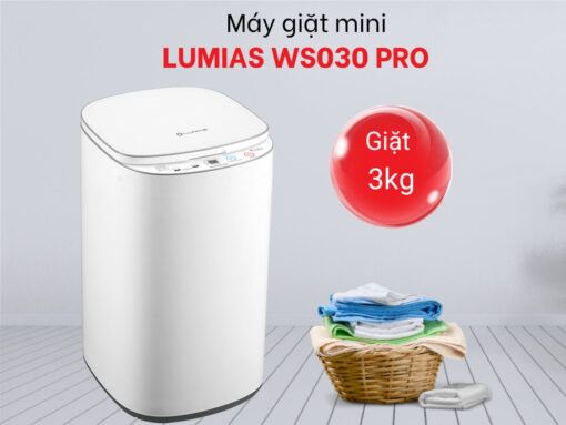 Máy giặt Lumias WS030 Pro thuộc dòng máy giặt mini với khả năng giặt 3kg đồ ướt, phù hợp dùng cho cá nhân, giặt lượng đồ ít, đồ lót, đồ em bé… 10 chương trình giặt tự động đáp ứng nhu cầu đa dạng của người dùng. Đặc biệt máy có chức năng giặt nước nóng giúp giặt sạch và diệt khuẩn hiệu quả. Ngoài ra còn có chức năng sấy khô cung cấp tiện dụng tối đa cho người dùng. Bảng điều khiển nút nhấn điện tử, giao diện tiếng Việt dễ dàng điều khiển máy.