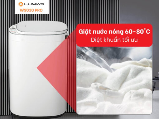 Máy giặt Lumias WS030 Pro có công nghệ giặt nước nóng sử dụng nước nóng 60-80°C để loại bỏ hiệu quả các vết bẩn trên cổ áo, tay áo, vết dầu mỡ, mồ hôi, bùn đất, vết nước sốt… Ngoài ra còn có thể diệt khuẩn, bảo vệ an toàn cho làn da, đặc biệt phù hợp với những gia đình có trẻ em hoặc người thân có làn da nhạy cảm.