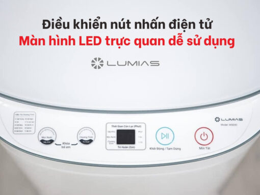 Máy giặt Lumias WS030 Pro thiết kế giao diện điều khiển hiện đại với hệ thống nút nhấn điện tử hiện đại, trực quan, dễ quan sát và điều khiển, đặc biệt là tiếng Việt dễ dàng phù hợp với mọi người dùng. Bên cạnh đó là màn hình LED hiển thị rõ ràng thời gian còn lại của chương trình, giúp người dùng theo dõi tiến độ giặt thuận tiện.