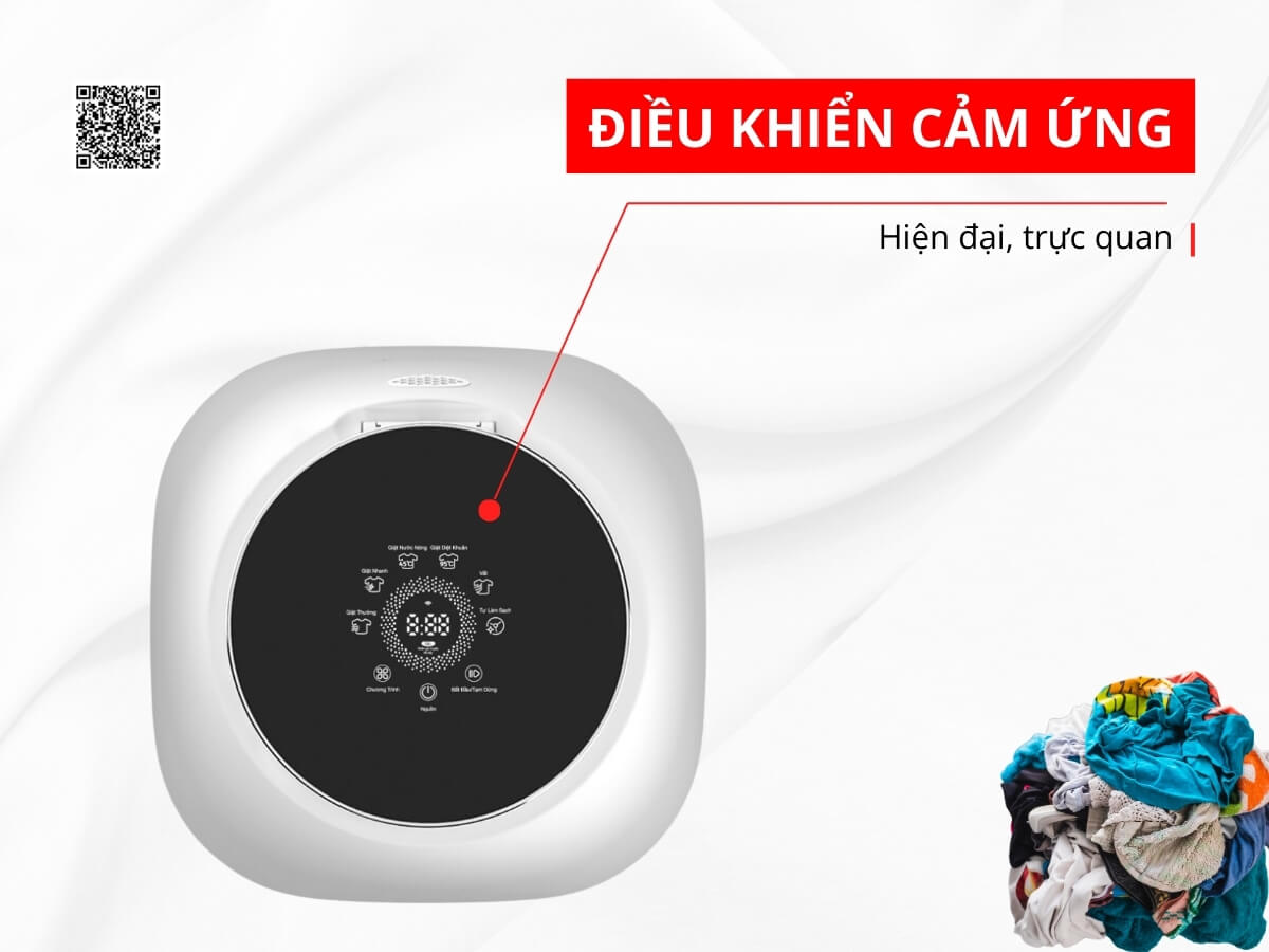 Máy giặt mini Lumias WS268 được trang bị bảng điều khiển cảm ứng trực quan, hiện đại, giúp người dùng dễ dàng thao tác và chọn chế độ giặt phù hợp. Các phím bấm cảm ứng cho phép điều chỉnh nhiệt độ, tốc độ vắt, thời gian giặt nhanh chóng và tiện lợi. Thiết kế này không chỉ tăng tính thẩm mỹ mà còn mang lại trải nghiệm sử dụng tiện lợi, an toàn cho người già và trẻ nhỏ.