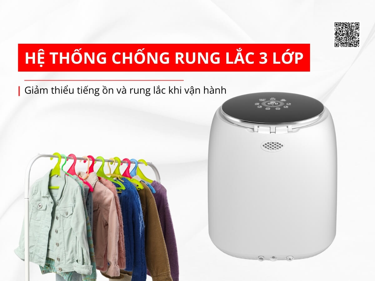 Máy giặt mini Lumias WS268 được trang bị hệ thống chống rung 3 lớp, giảm thiểu tối đa tiếng ồn và rung lắc khi vận hành. Thiết kế này không chỉ bảo vệ máy mà còn cho phép đặt máy trong phòng ngủ, phòng tắm hoặc không gian nhỏ mà không ảnh hưởng đến sinh hoạt hàng ngày. Vận hành êm ái cũng giúp tăng tuổi thọ cho máy, giữ cho lồng giặt và cơ cấu bên trong luôn ổn định.