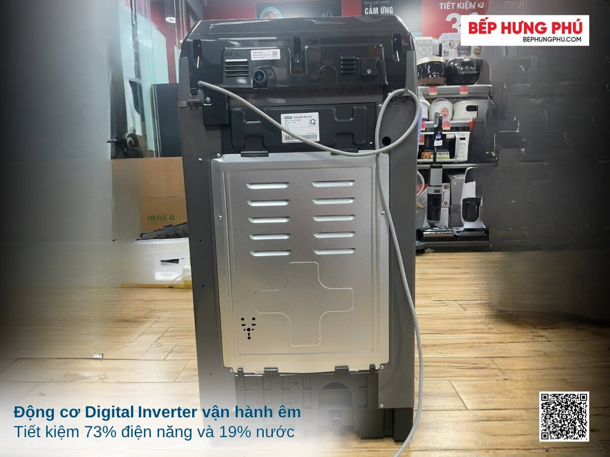 Máy giặt Samsung WA95CG4545BDSV trang bị động cơ Digital Inverter với nam châm vĩnh cửu giúp máy vận hành êm ái, bền bỉ, giảm rung lắc, tiết kiệm đến 73% điện năng và 19% nước so với máy giặt truyền thống. Động cơ được bảo hành lên đến 20 năm, thể hiện cam kết chất lượng và độ bền lâu dài của Samsung.