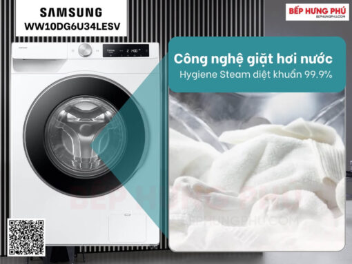 Máy giặt Samsung WW10DG6U34LESV có công nghệ giặt nước nóng giúp tăng khả năng xử lý vết bẩn cứng đầu và diệt khuẩn hiệu quả hơn.