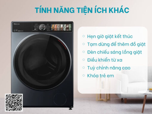 – Điều khiển từ xa: kết nối với thiết bị di động qua ứng dụng TSmartLife, cho phép điều khiển máy giặt từ xa vô cùng tiện lợi.