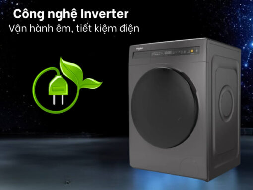 Máy giặt sấy Whirlpool WWEB10702FG được trang bị động cơ truyền động gián tiếp cho độ bền cao, đem lại hiệu suất giặt ổn định và tiết kiệm. Kết hợp công nghệ Inverter mang lại lợi ích kép giúp máy vận hành mượt mà, ít gây tiếng ồn hơn đồng thời tiết kiệm điện năng lên đến 30% so với động cơ thông thường. Đây là giải pháp vừa thân thiện môi trường lại tiết kiệm chi phí sử dụng cho người tiêu dùng.