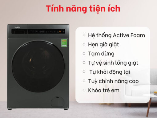 – Hệ thống Active Foam: hòa tan bột giặt thành bong bóng siêu mịn, thẩm thấu cực nhanh vào quần áo, giúp đánh bật hiệu quả các vết bẩn cứng đầu, đảm bảo quần áo sẽ luôn được giặt sạch sẽ.