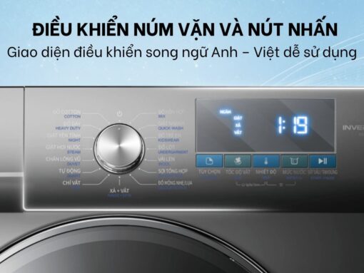 Bên cạnh đó là màn hình LED hiển thị rõ ràng, sắc nét, giúp bạn dễ dàng theo dõi quá trình hoạt động của máy. Đặc biệt, giao diện điều khiển song ngữ Anh – Việt dễ sử dụng, phù hợp với mọi người dùng Việt.
