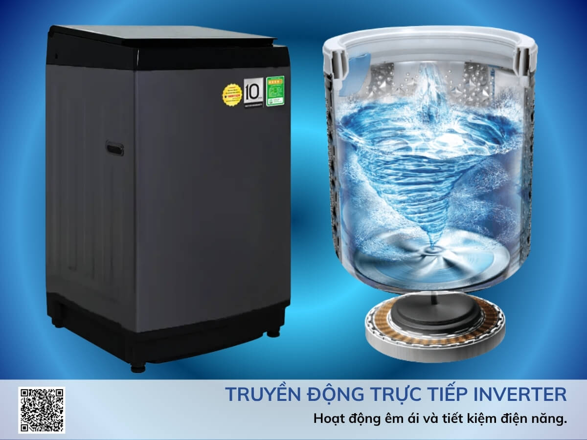Sản phẩm được trang bị động cơ truyền động trực tiếp DD Inverter mang đến khả năng vận hành êm ái, tiết kiệm điện năng và tuổi thọ cao. Nhờ đó, người dùng có thể tận hưởng trải nghiệm giặt giũ mạnh mẽ mà vẫn tối ưu chi phí sử dụng hằng ngày.