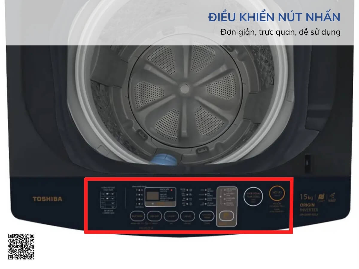 Máy giặt Toshiba AW-DM1600LV(SG) được trang bị bảng điều khiển nút nhấn kết hợp màn hình LED hiển thị rõ ràng, mang đến trải nghiệm thao tác trực quan và tiện lợi. Các nút được bố trí hợp lý, có độ nhạy cao, giúp người dùng dễ dàng lựa chọn chương trình giặt, mực nước hay thời gian vận hành chỉ với một thao tác chạm.