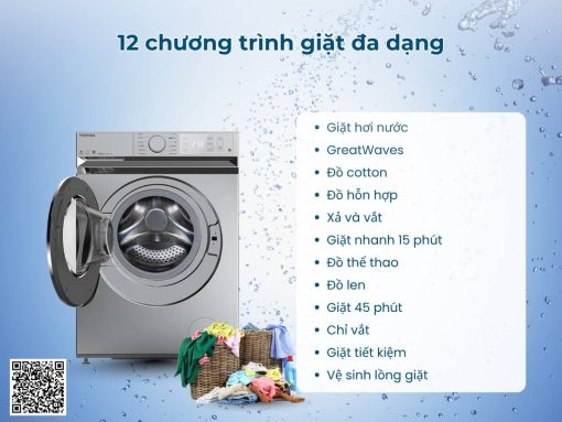 Máy giặt Toshiba TW-BL105A4V(SS) được trang bị 12 chương trình giặt thông minh, đáp ứng mọi nhu cầu sử dụng hằng ngày:
