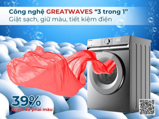 Công nghệ GreatWaves “3 trong 1” – Giặt sạch, giữ màu, tiết kiệm điện