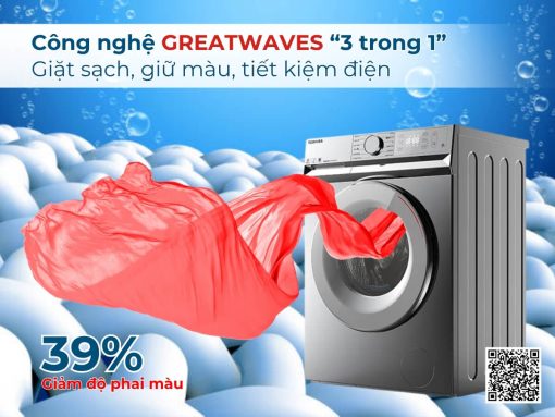 Công nghệ GreatWaves “3 trong 1” – Giặt sạch, giữ màu, tiết kiệm điện