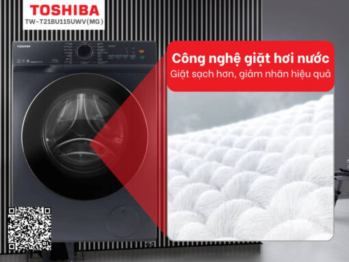 Máy giặt Toshiba TW-T21BU115UWV(MG) tích hợp công nghệ giặt hơi nước GreatSteam tiên tiến, sử dụng hơi nước nóng ở nhiệt độ cao giúp quần áo được giặt sạch hơn, làm mềm vải và giảm nhăn hiệu quả. Đặc biệt hơi nước nóng còn giúp diệt khuẩn và khử mùi tốt, mang lại quần áo sạch thơm, an toàn cho làn da nhạy cảm.