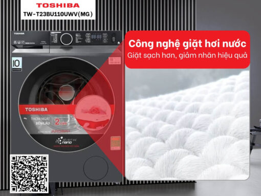 Máy giặt Toshiba TW-T23BU110UWV(MG) tích hợp công nghệ giặt hơi nước GreatSteam tiên tiến, sử dụng hơi nước nóng ở nhiệt độ cao giúp quần áo được giặt sạch hơn, làm mềm vải và giảm nhăn hiệu quả. Đặc biệt hơi nước nóng còn giúp diệt khuẩn và khử mùi tốt, mang lại quần áo sạch thơm, an toàn cho làn da nhạy cảm.