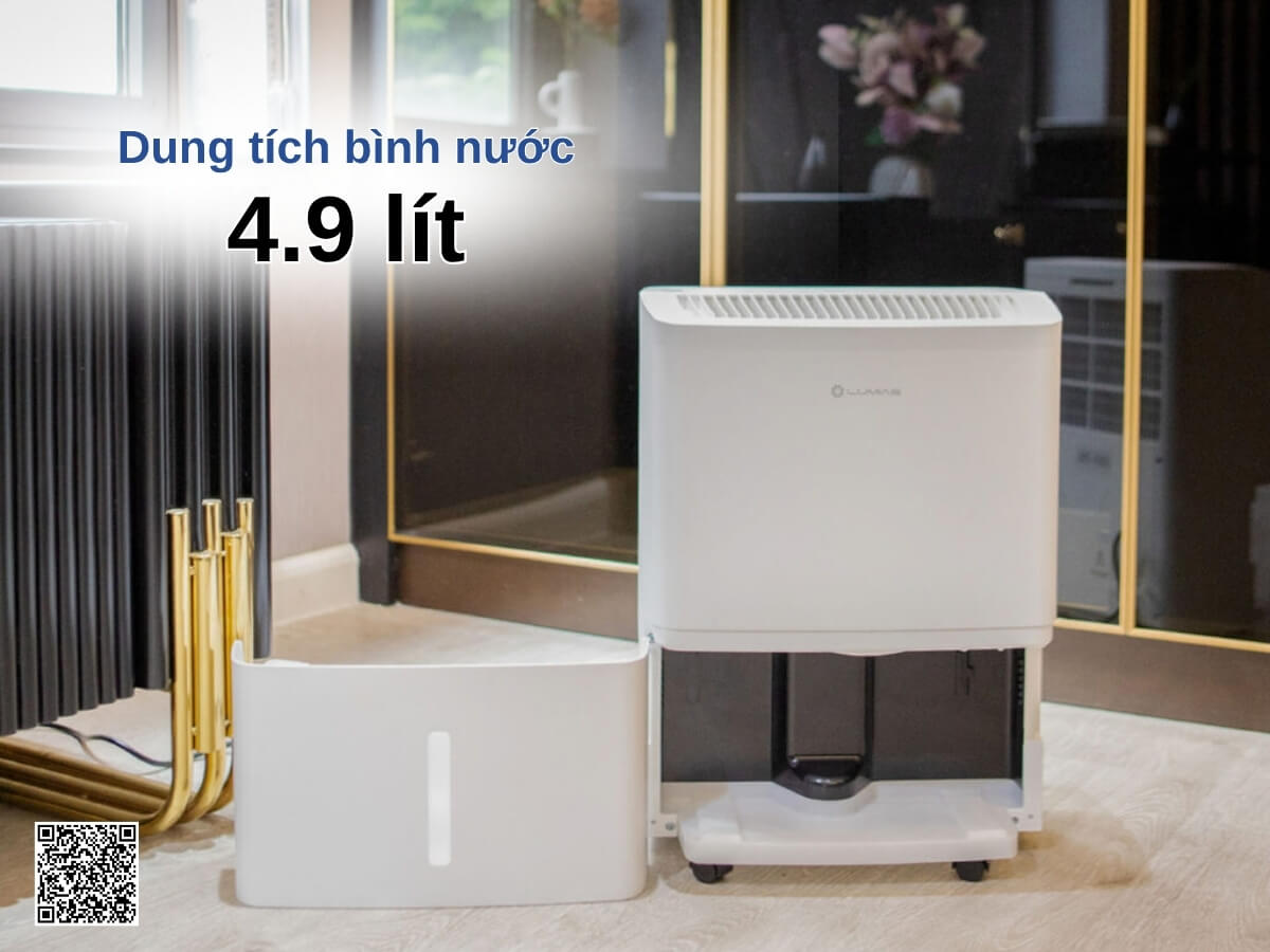 Công suất hút ẩm 20 lít/ngày, bình chứa nước 4.9lít