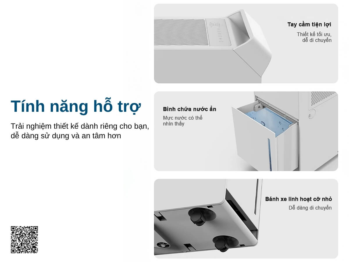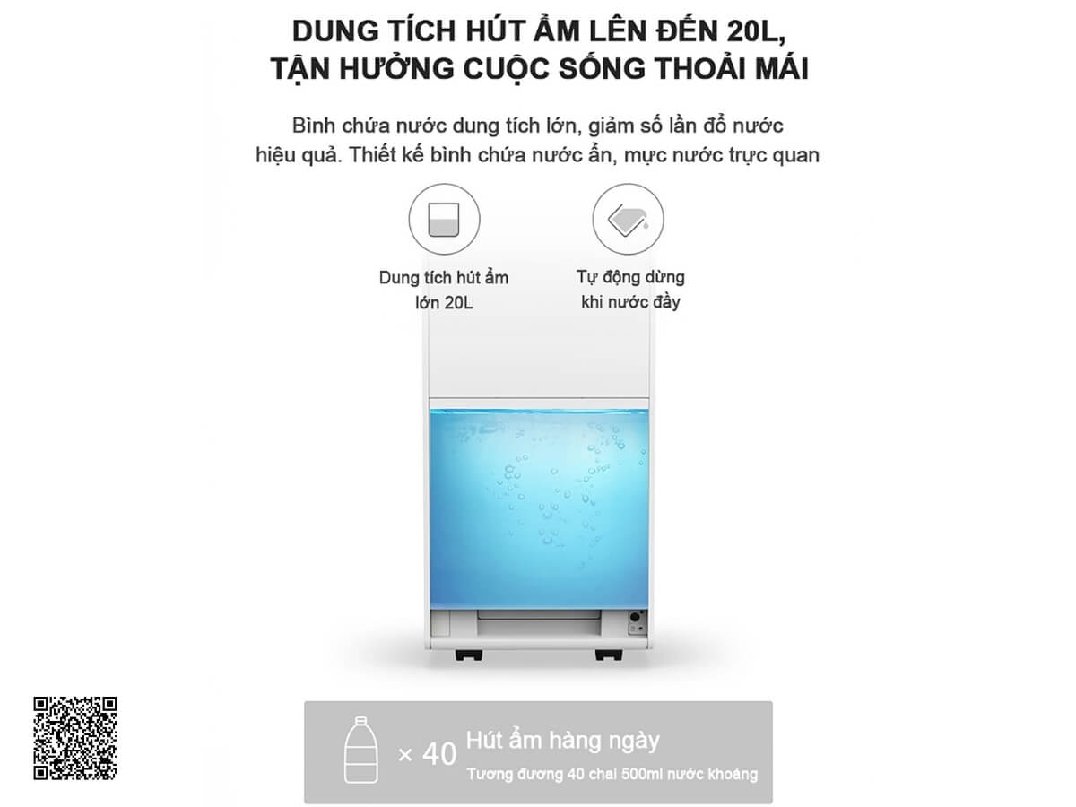 Công suất hút ẩm 20 lít/ngày, bình chứa nước 4 lít