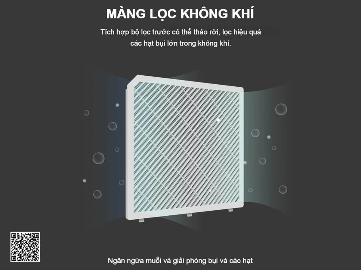 - Độ ồn thấp chỉ 51dB, vận hành êm ái, phù hợp cả trong phòng ngủ hoặc văn phòng.