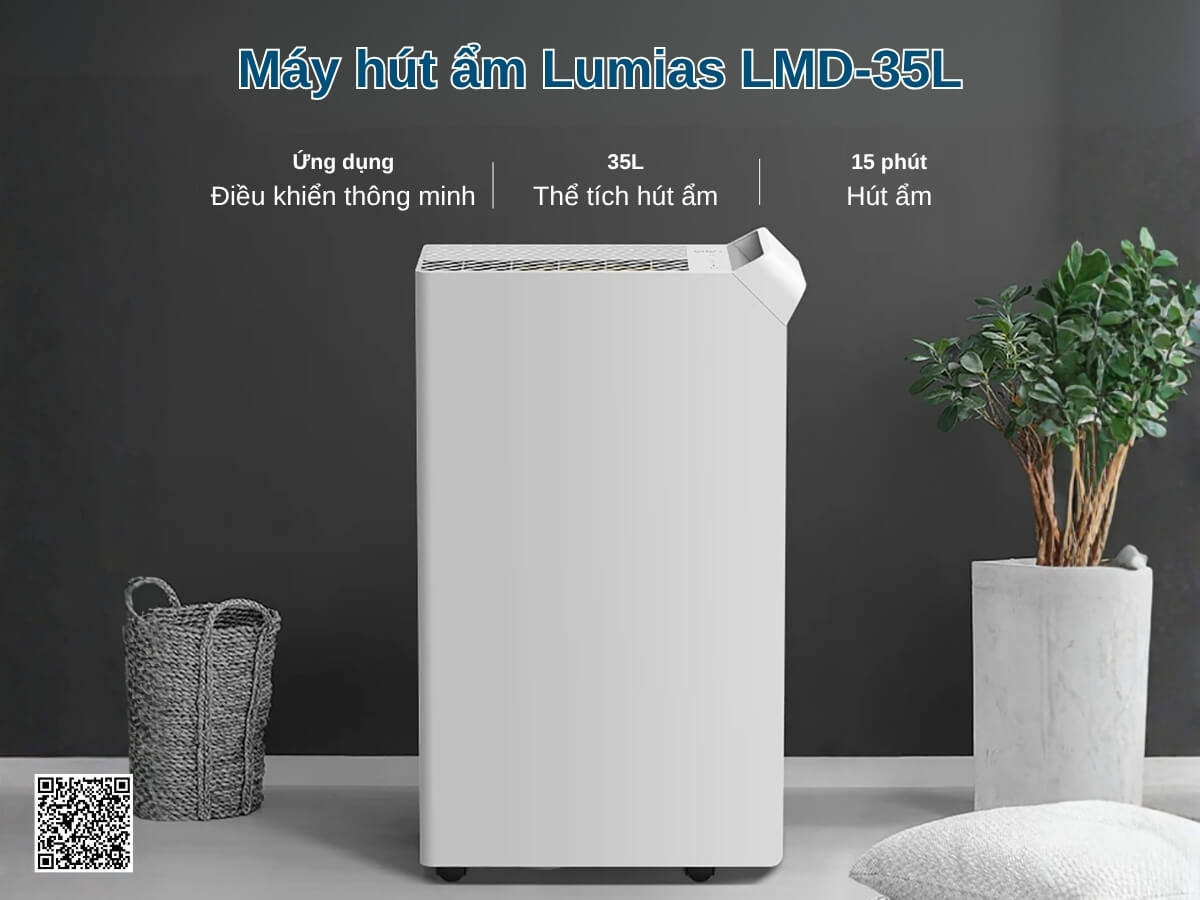 Máy hút ẩm Lumias LMD-35L có thiết kế hiện đại, công suất 420W, phù hợp cho không gian 20-70m². Với khả năng hút ẩm 35 lít/ngày, bình chứa 5.5 lít, máy giúp duy trì không khí khô thoáng. Trang bị điều khiển cảm ứng, 3 chế độ hút linh hoạt, vận hành êm ái và có thể kết nối SmartLife/Tuya để điều khiển thông minh, tiện lợi.