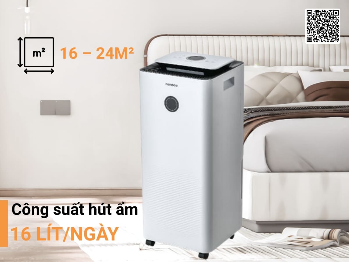 Công suất hút ẩm 16 lít/ngày, phù hợp với căn phòng 16 – 24m²