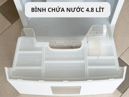 Bình chứa nước lớn 4,8 lít giúp máy hoạt động lâu mà không cần đổ thường xuyên