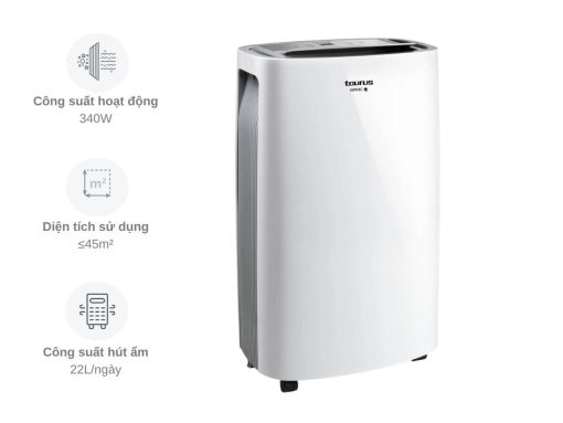 Máy hút ẩm Taurus DH2201 sở hữu thiết kế nhỏ gọn, công suất mạnh mẽ 340W với khả năng hút ẩm 22 lít/ngày, phù hợp cho không gian dưới 45m². Máy vận hành êm ái, có bình chứa 4 lít và màn hình hiển thị độ ẩm, giúp kiểm soát không khí hiệu quả, mang lại không gian khô ráo và thoáng mát.