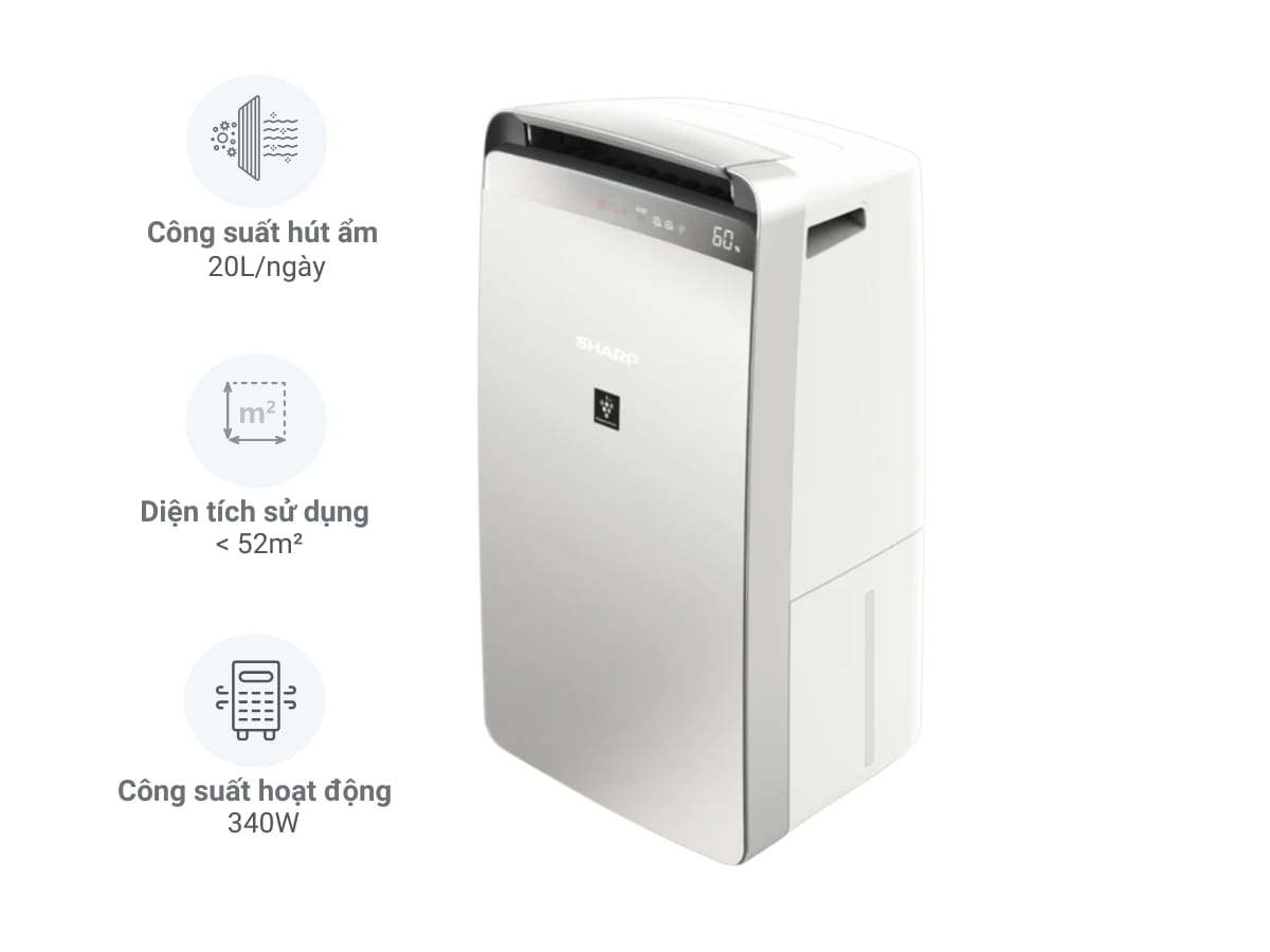 Máy hút ẩm và lọc không khí Sharp DW-J20FV-W