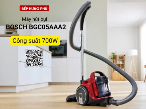 Máy hút bụi Bosch BGC05AAA2 được trang bị động cơ mạnh mẽ với công suất 700W, cung cấp lực hút mạnh mang lại hiệu quả cao trong việc loại bỏ bụi bẩn, các mảnh rác vụn… ở mọi khu vực trong nhà.