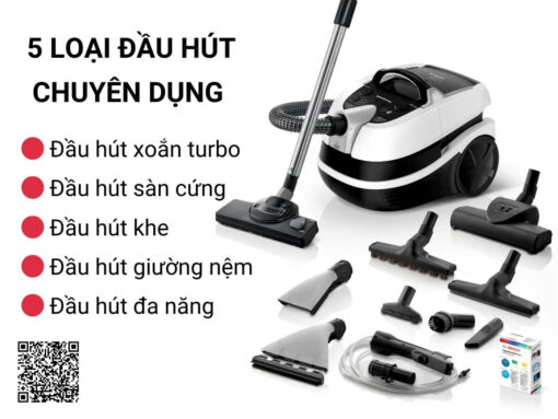 Đa dạng phụ kiện, làm sạch toàn diện: hút bụi, hút nước, làm sạch thảm…