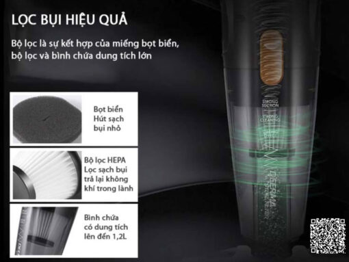 Máy hút bụi Deerma DX115C trang bị bộ lọc HEPA có khả năng thu gom và giữ bụi hiệu quả đến 99,9% bụi bẩn, kể cả bụi mịn… giúp sàn nhà sạch sẽ và không khí trong nhà trong lành hơn.
