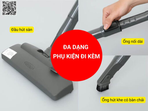 – Đầu hút khe có bàn chải giúp làm sạch những không gian hẹp như các góc cạnh tường, cầu thang…