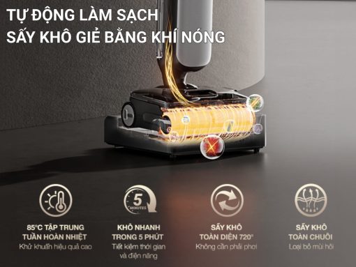 Máy hút bụi lau nhà Tineco Floor One S9 Artist Steam còn có tính năng tự động giặt làm sạch và sấy khô giẻ lau vô cùng tiện dụng cho người dùng.
