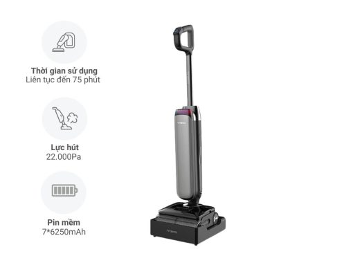 Máy hút bụi lau nhà Tineco Floor One S9 Artist Steam thiết kế không dây tiện lợi di chuyển, sử dụng pin mềm dạng túi có dung lượng lớn 7*6250mAh, có thể sử dụng liên tục đến 75 phút, thoải mái dọn dẹp cho cả ngôi nhà mà không lo hết pin giữa chừng. Động cơ mạnh mẽ 285W và lực hút đạt 22.000Pa, cung cấp khả năng làm sạch hiệu quả, hút bụi, lau nhà, hút nước với hiệu suất vượt trội. Cảm biến thông minh iLoop tự động điều chỉnh lực hút và lượng nước theo mức độ bẩn của sàn. Đặc biệt là chức năng tự giặt giẻ lau bằng nước nóng và sấy khô giẻ bằng khí nóng, cung cấp sự tiện lợi tối đa cho quá trình sử dụng.