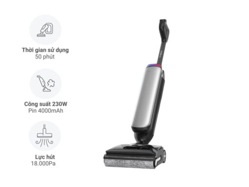Máy hút bụi lau nhà Tineco Floor One S9 Artist thiết kế không dây tiện lợi di chuyển và sử dụng, dung lượng pin 4000mAh có thể sử dụng tối đa đến 50 phút, thoải mái dọn dẹp cho cả ngôi nhà mà không lo hết pin giữa chừng. Động cơ mạnh mẽ 230W và lực hút đạt 18.000Pa, cung cấp khả năng làm sạch hiệu quả, hút bụi, lau nhà, hút nước với hiệu suất vượt trội. Cảm biến thông minh iLoop tự động điều chỉnh lực hút và lượng nước theo mức độ bẩn của sàn. Đặc biệt là chức năng tự giặt giẻ lau bằng nước nóng và sấy khô giẻ bằng khí nóng, cung cấp sự tiện lợi tối đa cho quá trình sử dụng.