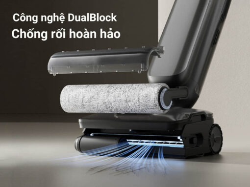 Công nghệ chống rối DualBlock trên Floor One S9 Artist giúp giải quyết triệt để vấn đề tóc và lông thú cưng cuốn chặt vào chổi lăn trong quá trình dọn dẹp. Lưỡi cạo chống rối được thiết kế đặc biệt có khả năng ngăn lông/tóc rối cuốn vào máy, giúp chống rối hiệu quả và bền lâu.