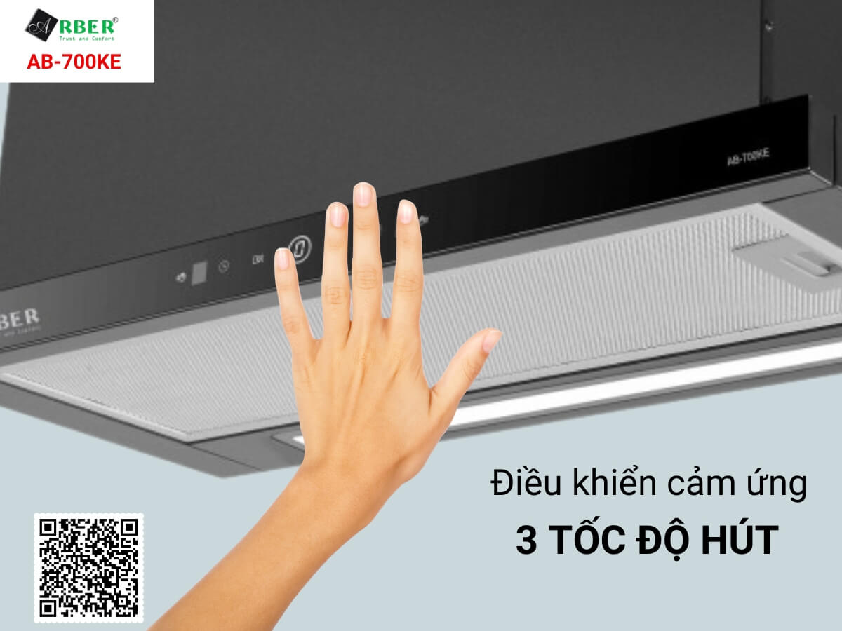 Máy hút mùi Arber AB-700KE thuộc dòng máy hút mùi bán âm chiều rộng 70cm, dễ dàng phù hợp với nhiều gian bếp của gia đình Việt. Công suất hút tối đa 1000 m³/h cho khả năng hút khói khử mùi hiệu quả. Hệ thống điều khiển cảm ứng hiện đại, có thể tuỳ chỉnh 3 tốc độ hút từ nhẹ đến mạnh tuỳ theo nhu cầu. Đặc biệt còn có cảm biến vẫy tay thông minh, điều khiển không chạm vô cùng tiện dụng.