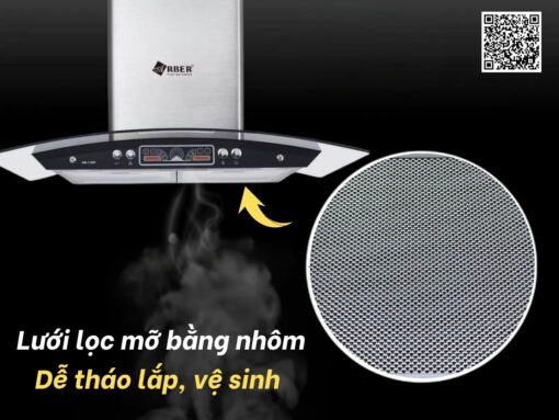 Máy hút mùi Arber AB-9000F trang bị lưới lọc mỡ bằng hợp kim nhôm, kết cấu nhiều lớp có tác dụng ngăn bụi bẩn và dầu mỡ xâm nhập vào bên trong, giúp đảm bảo hiệu suất hút và bảo vệ động cơ máy. Tấm lưới này được thiết kế có thể tháo rời để vệ sinh một cách dễ dàng.