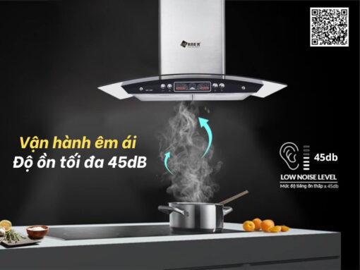 Máy hút mùi Arber AB-9000F vận hành khá êm ái với độ ồn thấp, tối đa 45dB, không làm ảnh hưởng đến không gian sinh hoạt của gia đình bạn. Động cơ vận hành êm ái còn góp phần tăng hiệu quả tiết kiệm điện và tăng cường tuổi thọ cho máy.