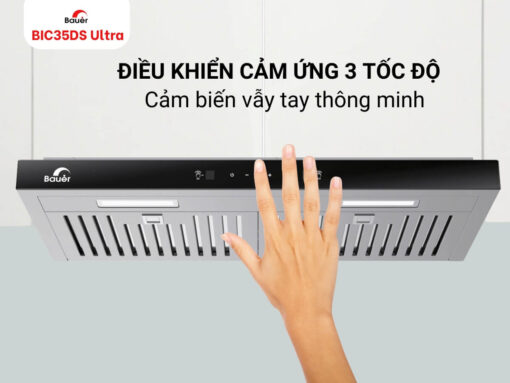 Máy hút mùi Bauer BIC35DS Ultra trang bị động cơ mạnh mẽ cho lực hút tối đa đến 1400 m³/h giúp xử lý nhanh và hiệu quả mọi mùi thức ăn khó chịu khi nấu nướng. Hệ thống điều khiển cảm ứng hiện đại, đặc biệt là công nghệ điều khiển cảm biến vẫy tay thông minh tăng trải nghiệm người dùng. Có 3 tốc độ hút dễ dàng tuỳ chỉnh theo nhu cầu.