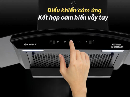 Đặc biệt đáng chú ý trên máy hút mùi Canzy CZ D70Smart này là tích hợp công nghệ cảm biến vẫy tay thông minh. Cho phép bạn thực hiện chuyển động vẫy tay trước màn hình cảm ứng của máy, là có thể bật/tắt máy, tăng/giảm tốc độ hút mà không cần thao tác trực tiếp trên máy, rất tiện dụng trong trường hợp tay bạn đang ướt hay dính bẩn.