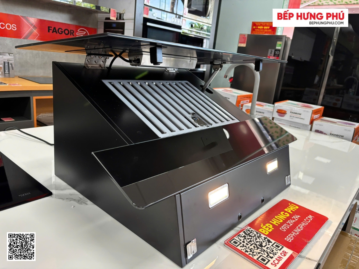 Với thiết kế kính vát và kích thước ngang 70cm, máy hút mùi này phù hợp với những gian bếp có không gian rộng rãi, thoải mái.