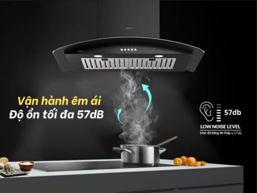 Máy hút mùi Comfee CH-70CV71B hoạt động với công suất mạnh mẽ, khả năng hút khói khử mùi hiệu quả, song máy vận hành khá êm ái và yên tĩnh, không gây tiếng ồn lớn ảnh hưởng đến không gian sinh hoạt của gia đình. Độ ồn tối đa của máy ở mức 57 dB, giữ cho không gian bếp được yên tĩnh và dễ chịu khi máy làm việc.