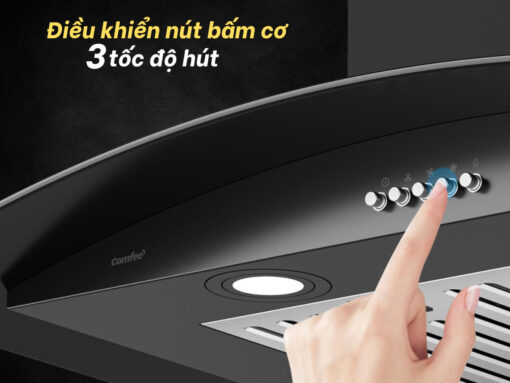 Máy hút mùi Comfee CH-70CV71B được trang bị bảng điều khiển nút bấm cơ truyền thống, thân thiện với mọi người dùng, cho phép bạn tùy chỉnh công suất hút một cách dễ dàng, nhanh chóng chỉ với thao tác bấm nhẹ nút.