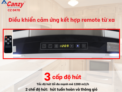 Máy hút mùi Canzy CZ 0470 được trang bị bộ điều khiển cảm ứng cùng remote với 3 mức cấp độ hút dễ sử dụng, giúp bạn có trải nghiệm tốt hơn trong quá trình nấu ăn. Bảng điều khiển cảm ứng giúp thao tác điều khiển đơn giản, dễ dàng, cùng remote cho phép điều khiển từ xa vô cùng tiện lợi.
