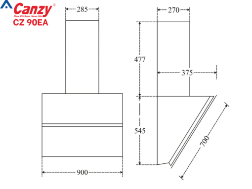 Với kích thước chiều ngang 90cm, máy hút mùi gắn tường Canzy CZ 90EA phù hợp với những không gian rộng rãi sẽ tăng thêm vẻ sang trọng cho gian bếp của bạn.