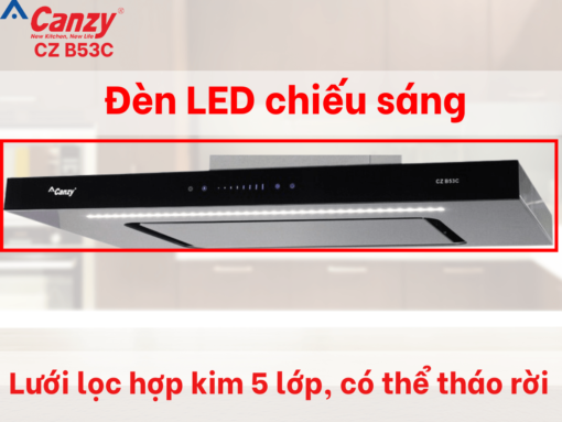 Máy hút mùi Canzy CZ B53C được trang bị thêm hệ thống đèn chiếu sáng của máy gồm 2 đèn LED (1.5W mỗi đèn) có tác dụng chiếu sáng và làm cho công việc nấu ăn thêm thuận lợi.