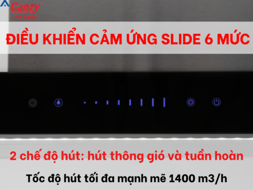 Máy hút mùi Canzy CZ B53C điều khiển bằng cảm ứng trượt Slide dễ dàng với 3 tốc độ cùng 2 chế độ hút chuyên sâu giúp bạn dễ dàng lựa chọn mức tốc độ phù hợp với lượng khói bụi nhà bếp.