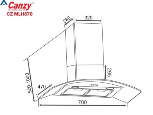 Máy hút mùi Canzy CZ MLH870 được làm bằng kính cường lực và thân máy bằng thép chống gỉ, tăng độ bền cho máy và độ an toàn cho người sử dụng. Máy sở hữu thiết kế treo tường kính cong sang trọng, hiện đại. Với kích thước 470S x 700R x 1000C mm, máy có thể kết hợp với rất nhiều kiểu bếp vì hầu hết các bếp đều có kích thước tương xứng.