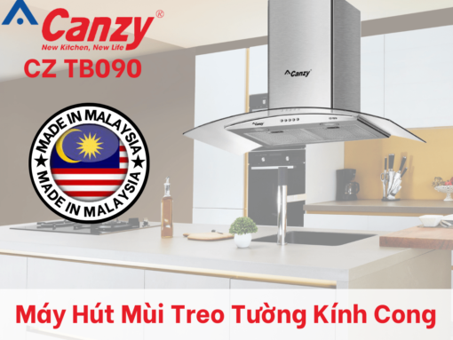 Máy hút mùi Canzy CZ TB90 thiết kế treo tường kính cong đẹp mắt